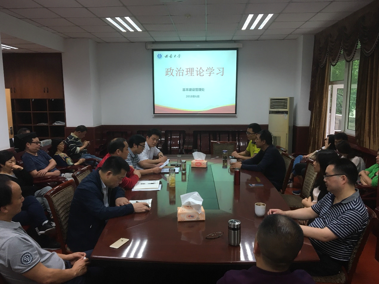 6月1日下午,基本建设管理处组织全体人员在基本建设管理处二会议室进行了2018年第四次政治理论学习,会议由基本建设管理处支部书记、副处长吴新宇同志主持。